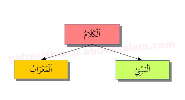 - Mu’rab (المُعْرَبُ): Kata yang dapat menerima I’rab; yaitu kata yang harakat atau huruf akhirnya bisa berubah sesuai dengan kedudukannya dalam kalimat.